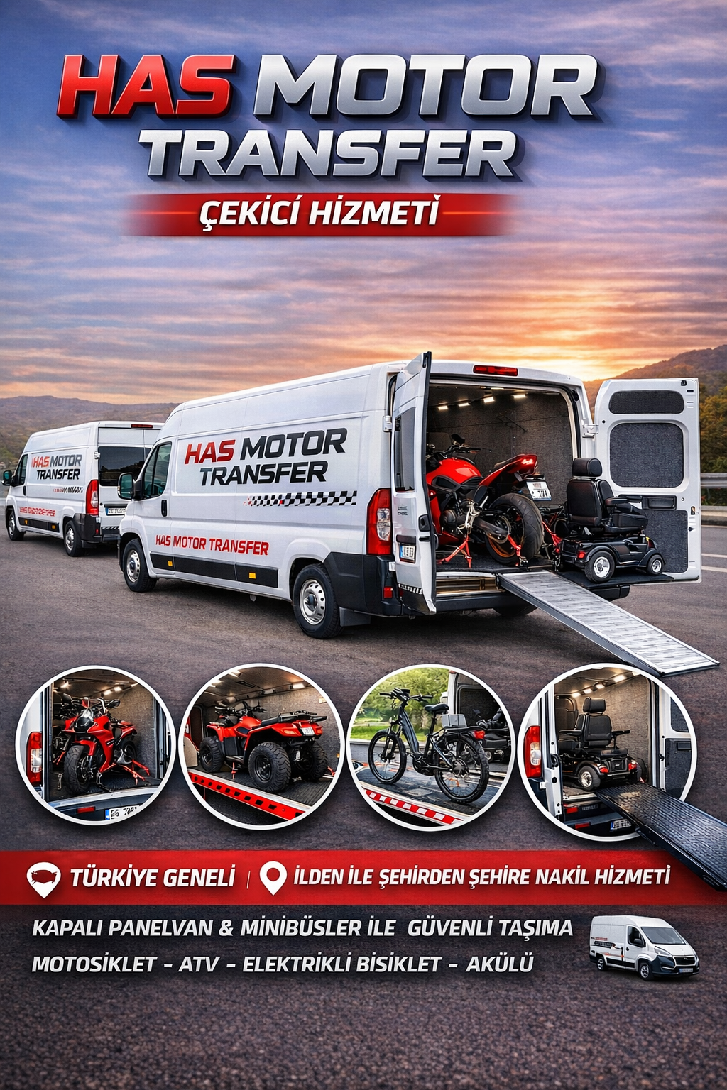 HAS Motor Transfer, motosiklet taşıma ve çekici hizmetlerinde profesyonel çözümler sunar. Şehir içi ve şehirler arası motosiklet transferi, ATV taşıma, elektrikli bisiklet ve akülü tekerlekli sandalye nakli hizmetlerini güvenli ve hızlı şekilde gerçekleştiriyoruz. Modern ekipmanlarımız ve uzman kadromuz ile araçlarınız özel sabitleme sistemleri kullanılarak hasarsız şekilde taşınır. İlden ile nakil hizmetlerimiz hem bireysel hem de toplu taşıma ihtiyaçlarına uygun olarak planlanmaktadır. Motosiklet çekici hizmeti arıyorsanız, HAS Motor Transfer ile güvenli, hızlı ve profesyonel çözümlerden yararlanabilirsiniz. Hizmetlerimiz: Motosiklet taşıma ve çekici hizmeti ATV taşıma Elektrikli bisiklet taşıma Akülü tekerlekli sandalye taşıma Şehir içi ve şehirler arası transfer İlden ile güvenli nakil Özel ve toplu taşıma çözümleri HAS Motor Transfer ile araçlarınız emin ellerde.